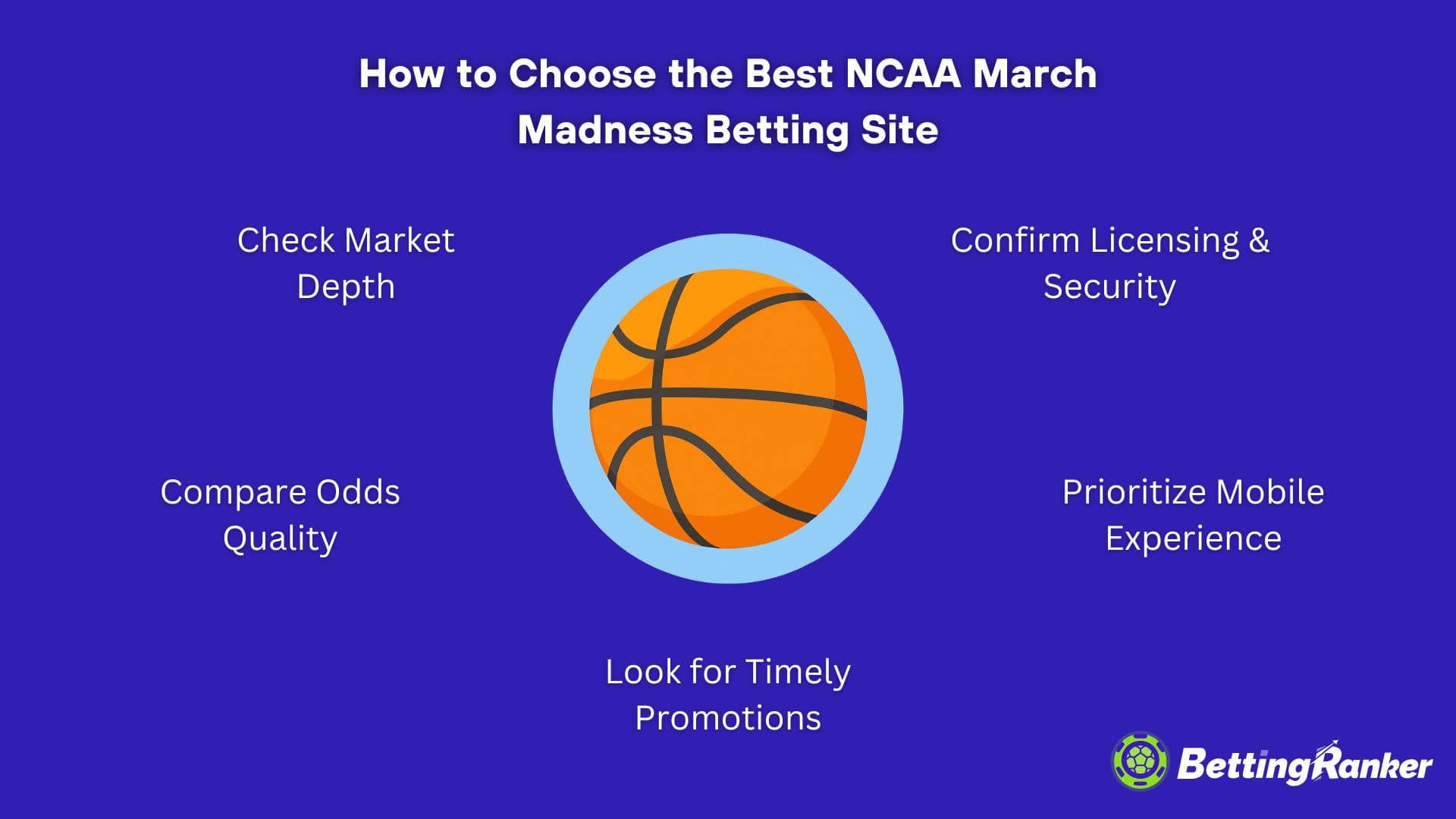 Explora las listas de sitios de apuestas confiables para el March Madness de la NCAA de BettingRanker para ver reseñas de casas de apuestas deportivas y encontrar la que mejor se adapte a tu estilo y necesidades.